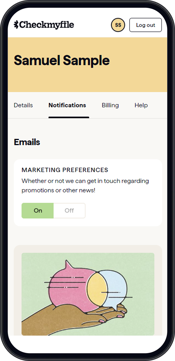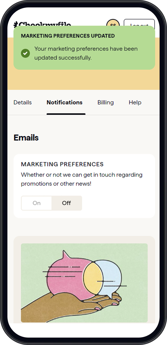 Click on the 'Notifications' tab at the top of the page. Your existing marketing preferences will show on screen.