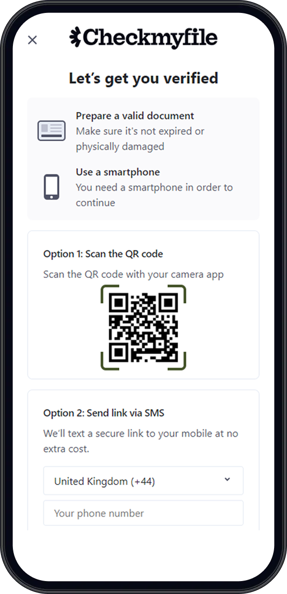 Scan the QR code or enter your mobile number to get started. You might be asked to allow camera and microphone access on your device. But don’t worry - this is completely normal, and the process should only take a couple of minutes.